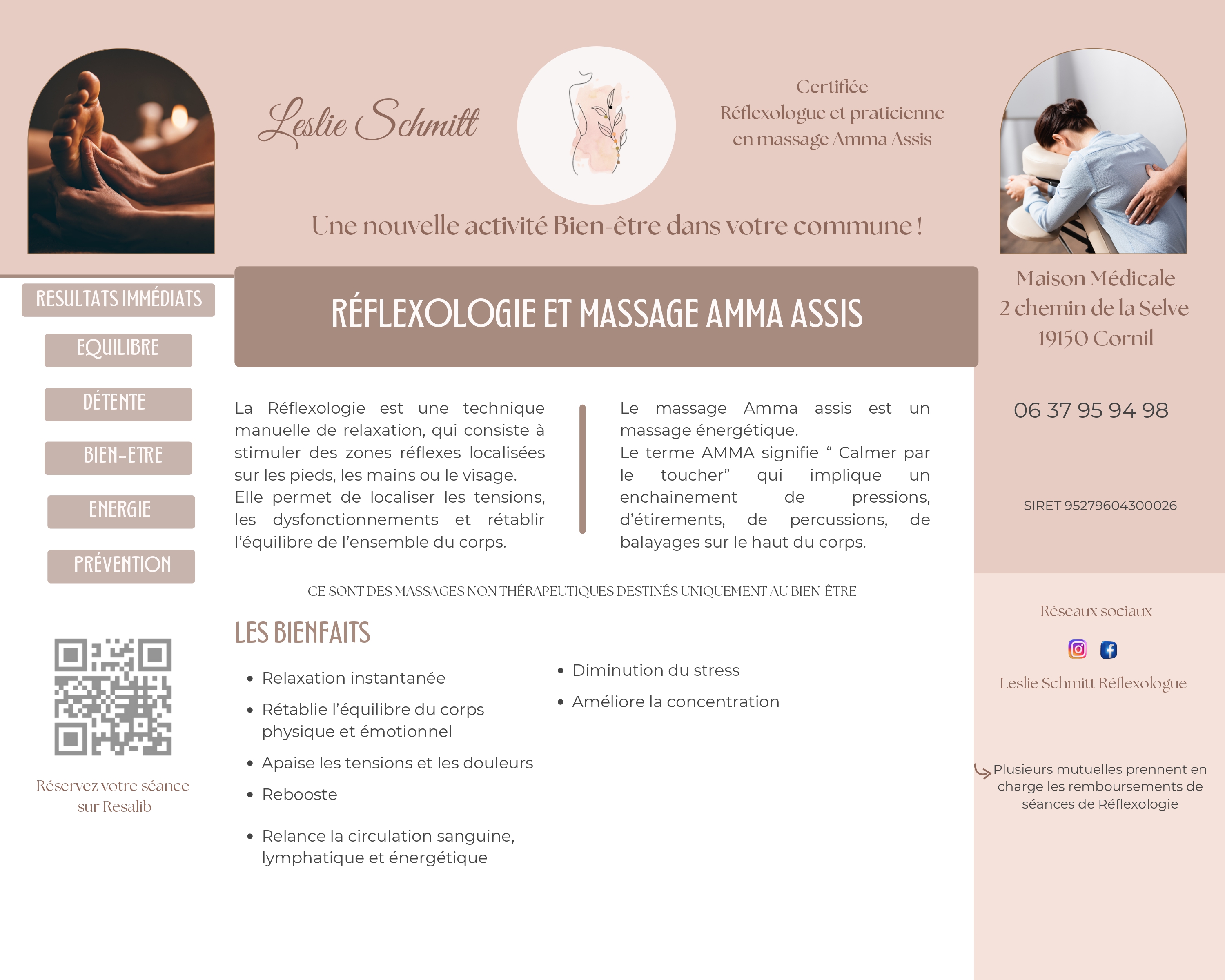 La Réflexologie est une technique manuelle de relaxation, qui consiste à stimuler des zones réflexes localisées sur les pieds, les mains ou le visage. Elle permet de localiser les tensions, les dysfonctionnements et rétablir l’équilibre de l’ensemble du corps. Le massage Amma assis est un